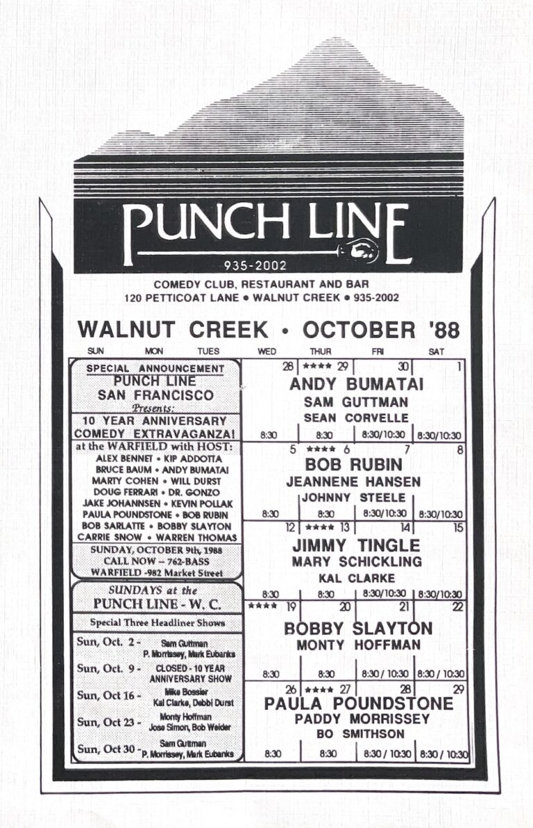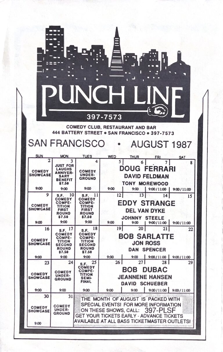 “The town’s best buy in comedy is unquestionably the show at the Holy City Zoo, a snug little club at 408 Clement St. There’s no cover, no admission, and the price of a drink gets you an hour or more of live entertainment by an assortment of stand-up comics.”<br>~ SF Sunday Examiner &amp; Chronicle