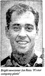 Jon Ross— “has the material, style and looks to make it very big… Doesn’t waste words.” ~ Bob Ayres, Other Cafe