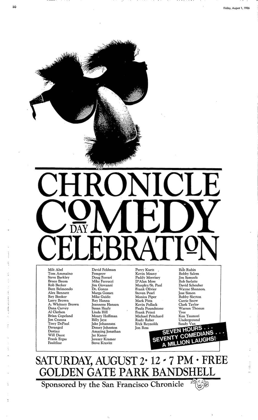 ~ Datebook • July 14, 1985 • Perpetual Punchlines in the Park by David Kleinberg