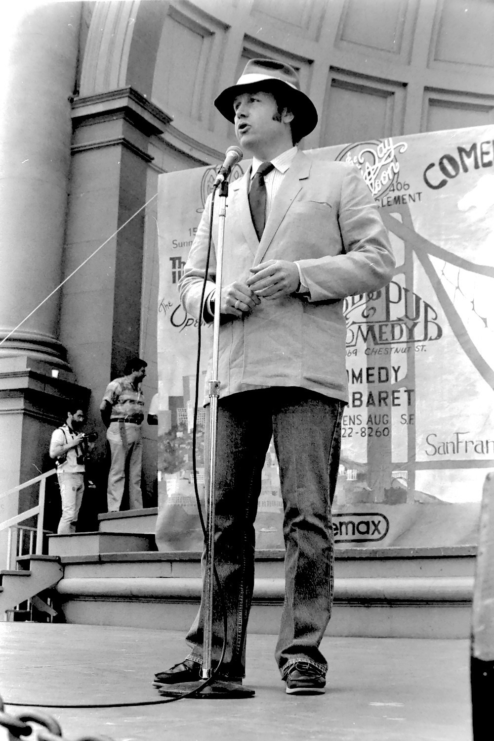 Cranna, a member of the Committee from 1968 until the famous San Francisco comedy group went belly up in 1974, gathered together Diane Amos, Geoffrey Bolt, Danny Delk, (the voice of ads for Clorox, Safeway, etc.), Nancy Garrett-Nash, Michael O’Brien, Chris Pray who was with Cranna at the Pitchel Players and Committee and Kelvin Yee. Every Wednesday at the Open Theater at 441 Clement Street, the Deranged group improvises from audience suggestions. Cranna doesn’t like to rehearse or perform more than once per week because it saps the group’s energy. Also, he sees the group as more of a hobby than a job since he already makes a living from radio ads (Fotomat, Marriott’s Great America, McDonald’s…), film, acting, (“The Sunshine Boys” “Who’ll Stop the Rain?” “Time after Time”) and TV writing three Flip Wilson shows, one Paul Lynde show and two “Laverne and Shirley” shows.